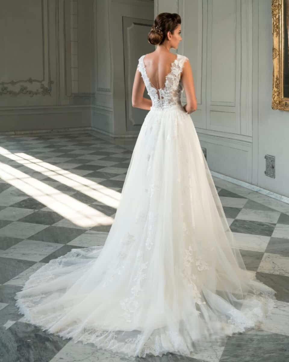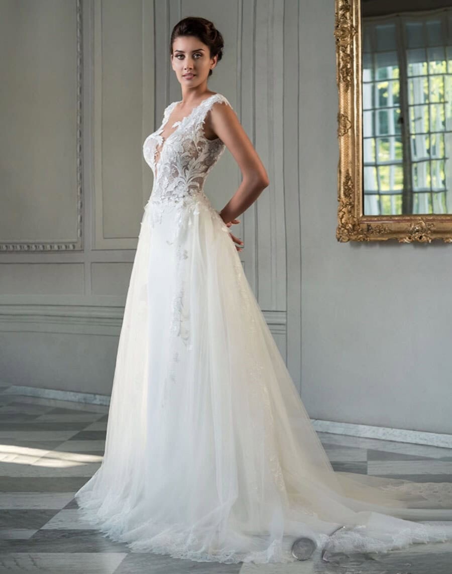 Laissez-vous envoûter par la robe de mariée Iris signée MS Moda, une création A-line à l’allure romantique et infiniment raffinée, disponible dans nos boutiques de robes de mariage à Paris et Nogent sur Marle. Son top en dentelle délicatement festonnée, son décolleté en V, ses larges bretelles sculptées, ainsi que sa jupe vaporeuse en tulle ornée d’applications florales composent une silhouette élégante, chic et empreinte d’un charme bohème. Chez O’Scarlett, vivez une expérience d’exception : plus de 300 robes, un atelier de retouche sur mesure, et des conseillères expertes,stylistes, modélistes et couturières, entièrement dédiées à votre rêve.