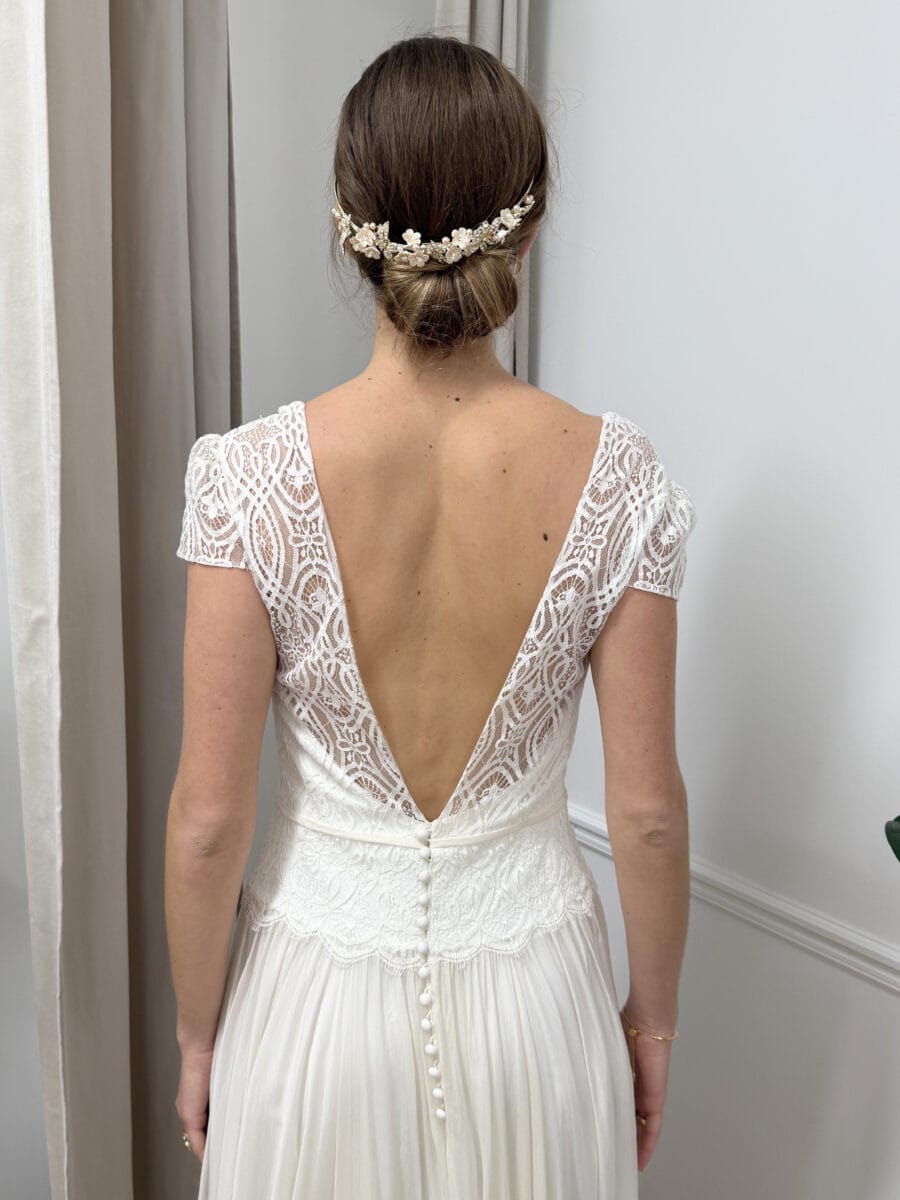 Disponible dans la boutique O’Scarlett à Paris, cette création bénéficie de l’expertise de la maison : plus de 300 modèles, un atelier de retouche sur mesure et des conseillères expertes et attentionnées pour accompagner chaque future mariée.
